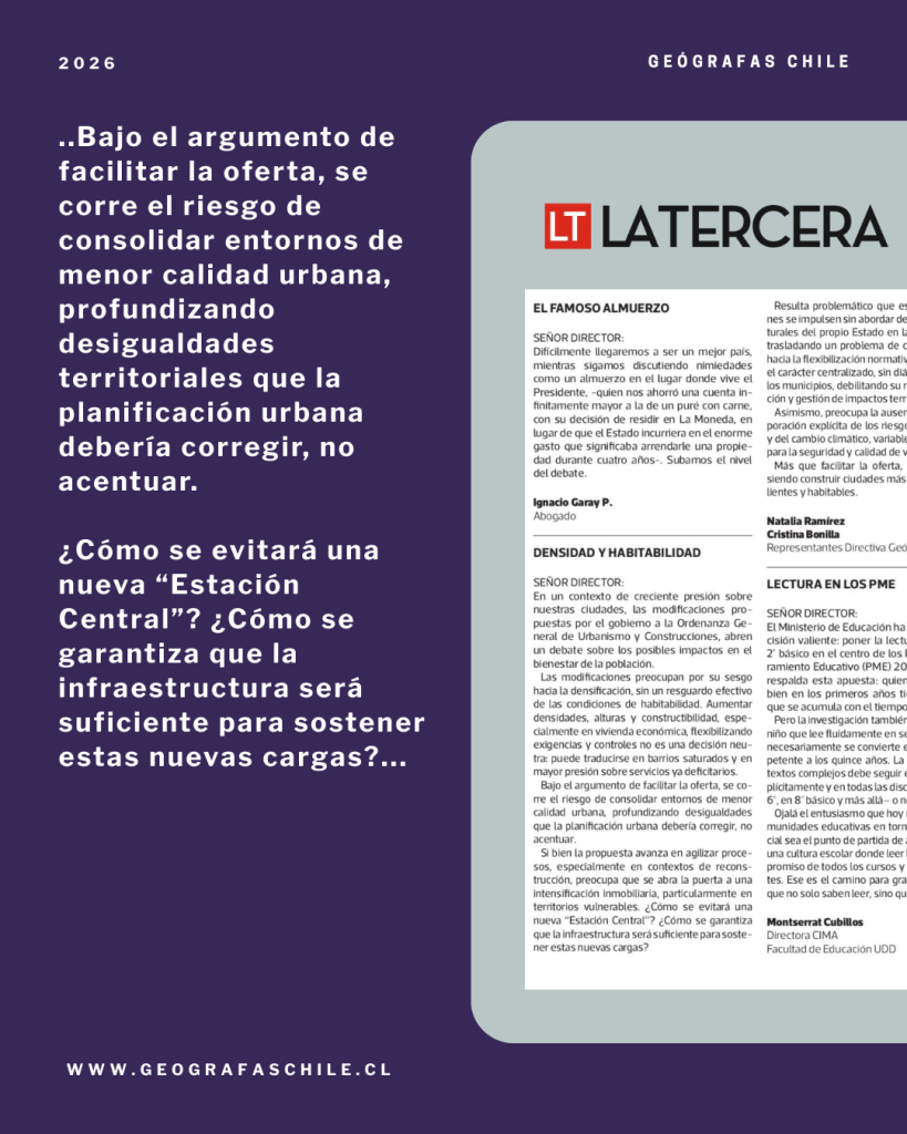 Los invitamos a leer nuestra carta al director y a involucrarse con este tema, de tomar razón un cambio así, se empeorará la calidad de vida urbana.