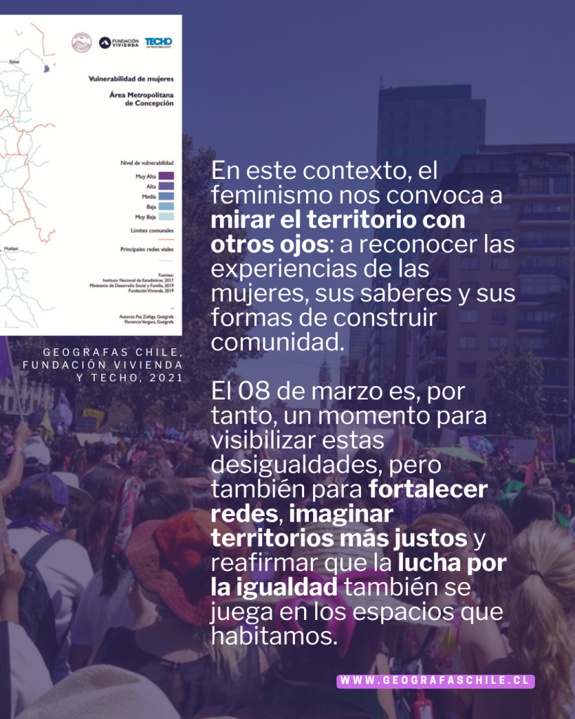 Este 8M denunciamos que los territorios han sido planificados sin nosotras. El lugar donde nacemos y vivimos sigue determinando nuestras oportunidades, y eso también es una brecha de género que debemos enunciar y cerrar.